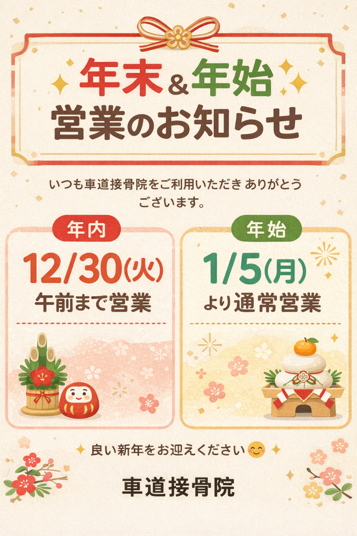 皆さま元気に新年をむかえれるように車道接骨院で体のメンテナンスはいかがですか?