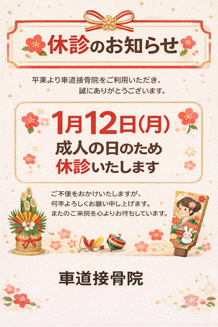 車道接骨院の年末年始の営業についておしらせです