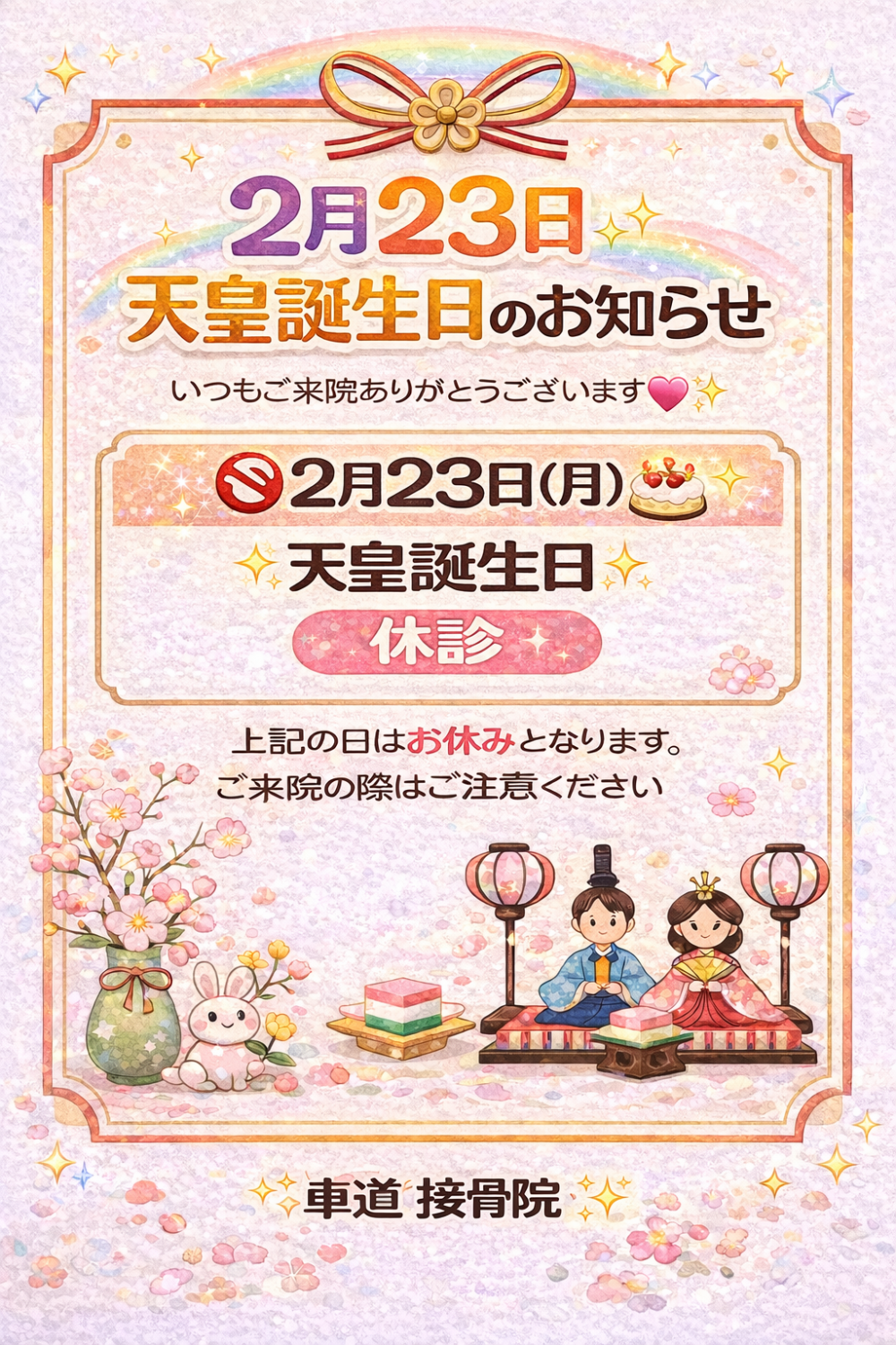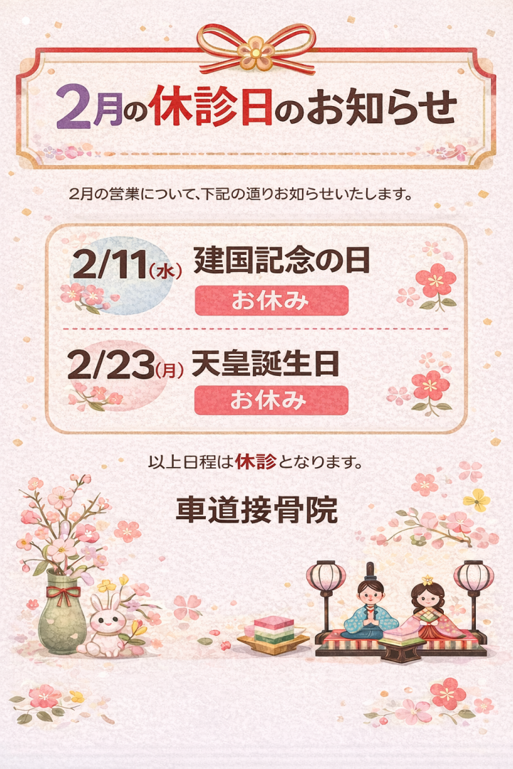 2月23日(水曜日)天皇誕生日は、休診となります。